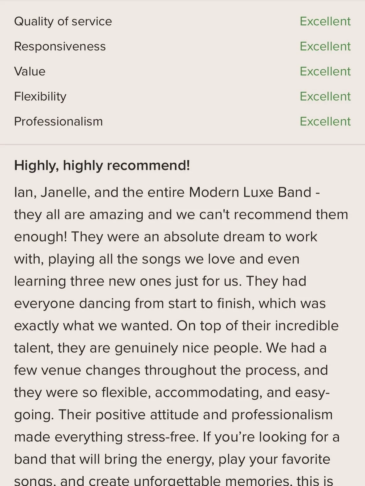 Modern Luxe is booked exclusively by EastCoast Entertainment. For booking information, e-mail or call Kaitlin.